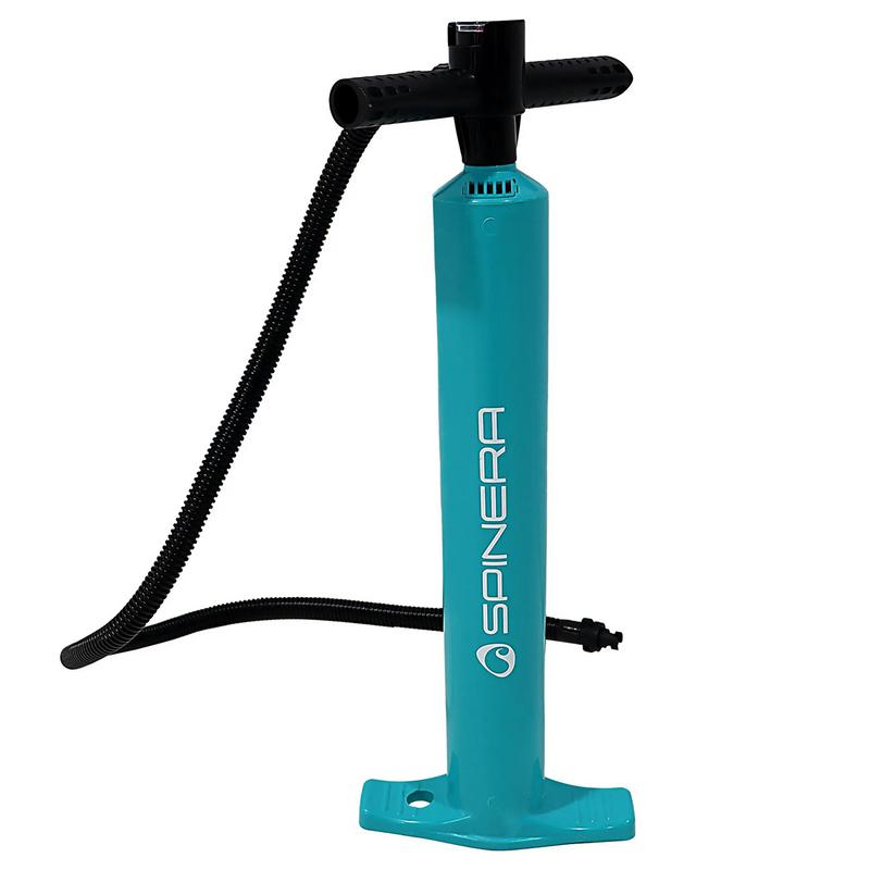 Spinera Single Action SUP Pump är en kraftfull och lättanvänd manuell pump framtagen för snabb uppblåsning av SUP-brädor, kajaker och gummibåtar. Med en volym på 1,8 liter per pumpning fyller den effektivt högtrycksutrustning utan att kännas tung att använda. Den inbyggda tryckmätaren visar exakt tryck mellan 3 och 25 PSI som gör det lätt att pumpa till rätt nivå.