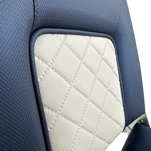 Lyxvinyl Diamant har ett diamantmönster och kombinerar utseendet och känslan av äkta tyg med vinylets slitstyrka och vattentäta egenskaper. Med en tjocklek på 2,1 mm och en baksida av skummgummi ger den extra komfort och en fyllig struktur. Vinylen är helt vattentät och utformad för att tåla både inomhus- och utomhusbruk och gör den idealisk för båtar, utemiljöer och andra krävande förhållanden.
