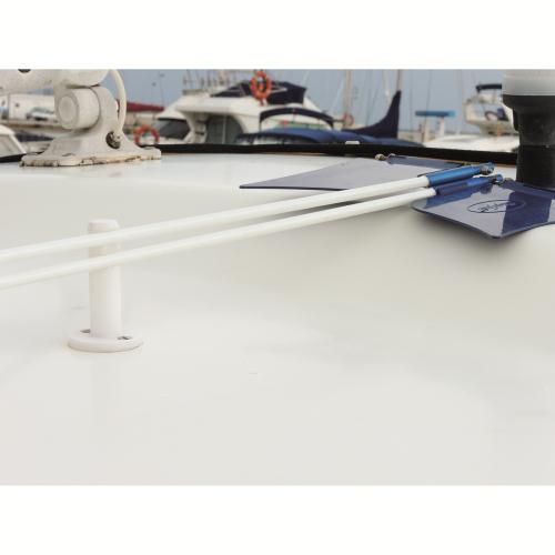 Kraftig konstruktion. Tillverkad i glasfiber, aluminium och rostfritt syrafast stål.