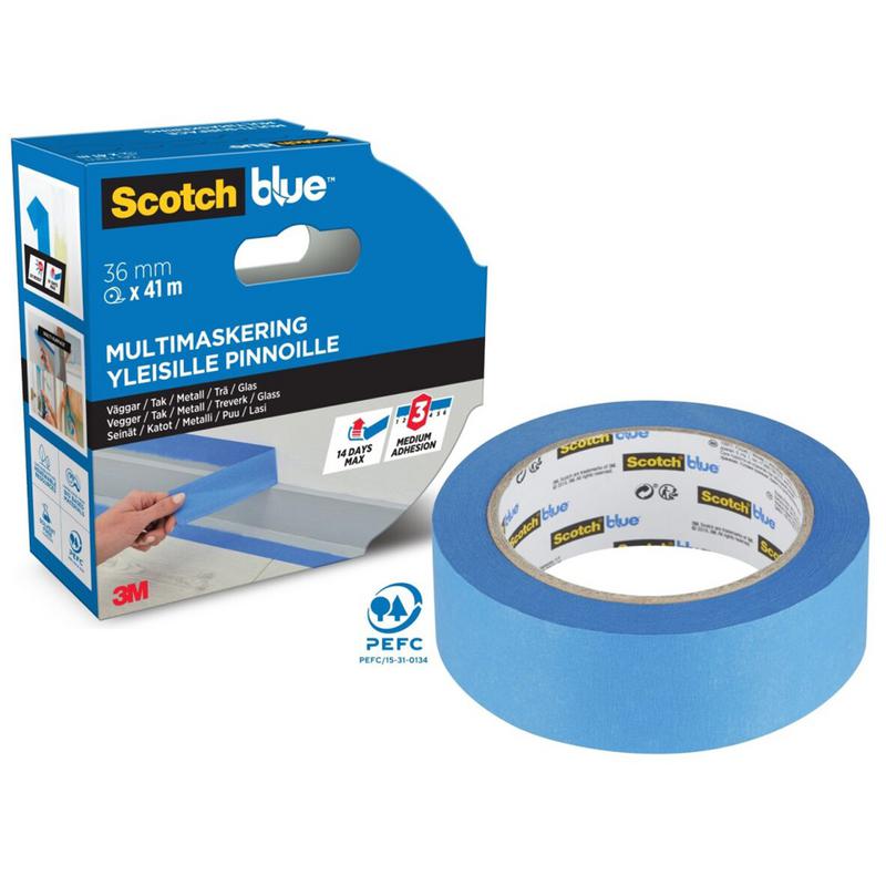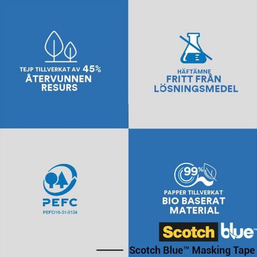 ScotchBlue Premium maskeringstejp passar för många olika ytor både inomhus och utomhus. Den här tejpens baksida av ScotchBlue™, tillsammans med högkvalitativt häftämne, säkerställer professionella resultat utan krångel. Med medelhög vidhäftning är den enkel att applicera och kan enkelt tas bort upp till 14 dagar efter användning utan att lämna rester.