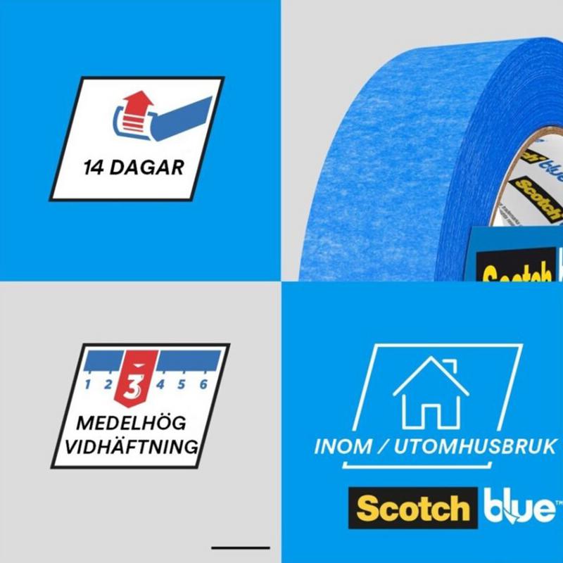 ScotchBlue Premium maskeringstejp är idealisk för en mängd olika ytor som väggar, tak, metall, trä och glas. Dess formbarhet och enkelhet att riva av gör den användarvänlig för olika projekt. Den är även UV-beständig, vilket gör den perfekt för utomhusbruk utan att lämna kladdiga rester efter sig.