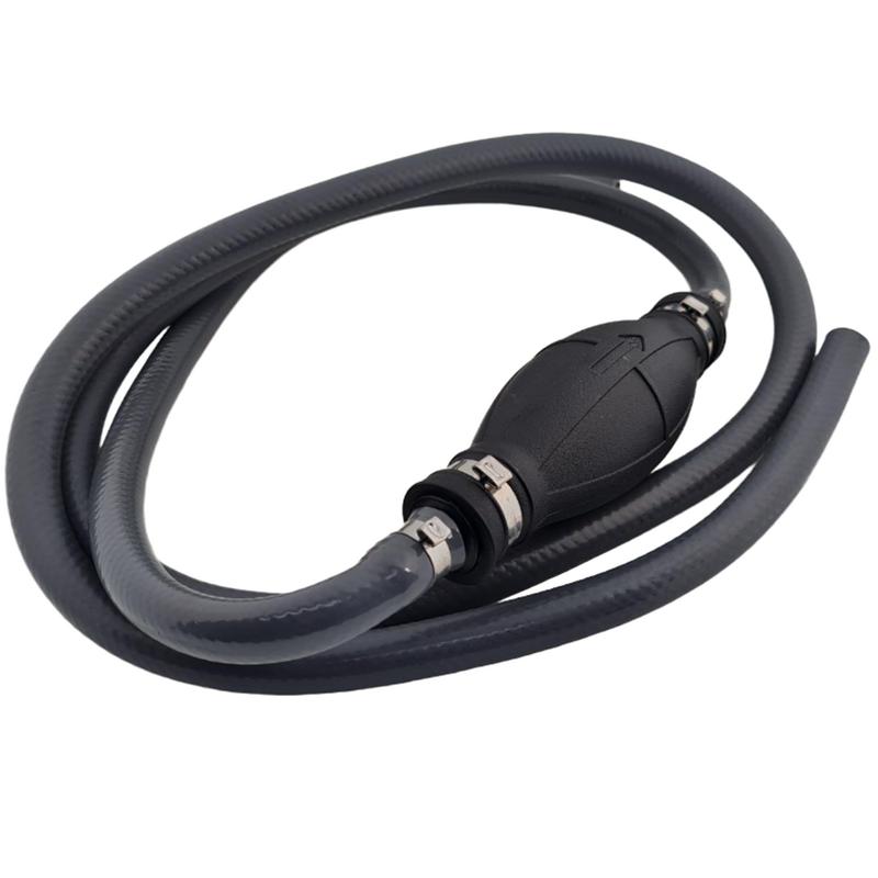 Universal alkohol och UV-resistent armerad slang. Pump med fjäderbelastad ventil och dubbla backventiler. Rostfria slangklämmor.