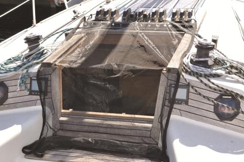 Håll myggen borta från kajutan. Häng upp myggnätet över ingångsluckan. Myggnätet fästes med tamp på varje sida, i t ex avlastarna ovanför ingångsluckan. Blybandskanten håller myggnätet på plats. När man går in/ut så lyfter man bara på ena sidan och myggnätet faller enkelt på plats när man har gått in/ut. Myggnätet är finmaskigt nog att hålla de flesta små insekter utanför och klarar även knott. Nätet passar både segelbåtar och motorbåtar. Nätet levereras med en praktisk förvaringspåse.