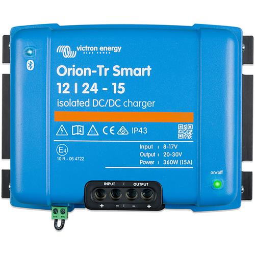 Orion-Tr Smart 12/24V-15A är en isolerad DC/DC-laddare med adaptiv 3-stegs-laddning och inbyggd Bluetooth.
