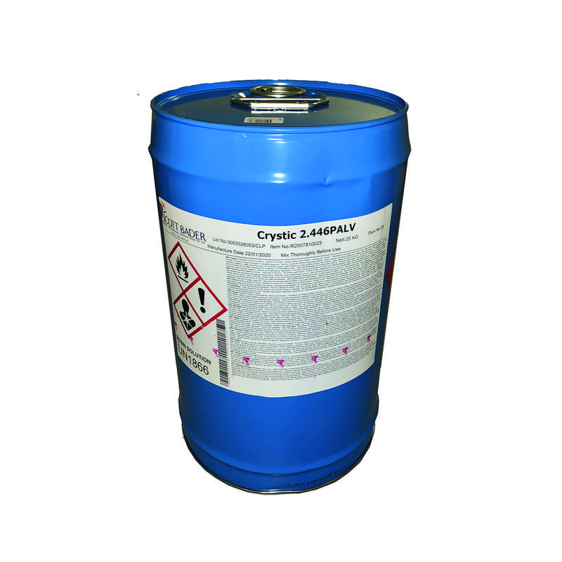 Crystic 2-446PALV är en föraccelererad, tixotrop ortoftalsyrapolyester med låg styrenavgång, en sk miljöpolyester. Polyestern är avsedd för sprut eller handlaminering och är utformad att ge en snabb glasvätning, låg exotherm temperatur, och snabbt uthärdningsförlopp. Detta gör denna polyester lämplig där en snabb produktionstakt är nödvändig.