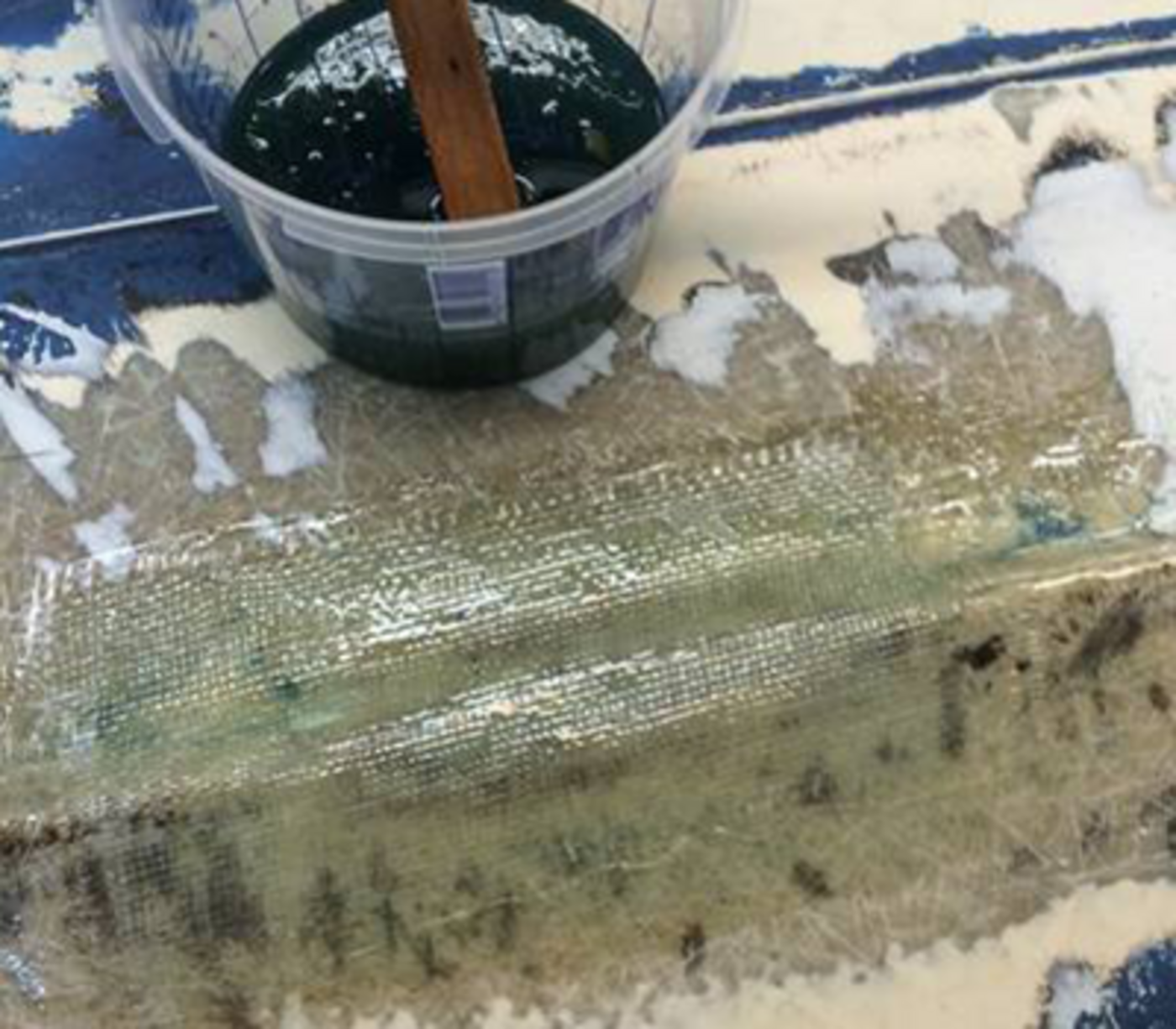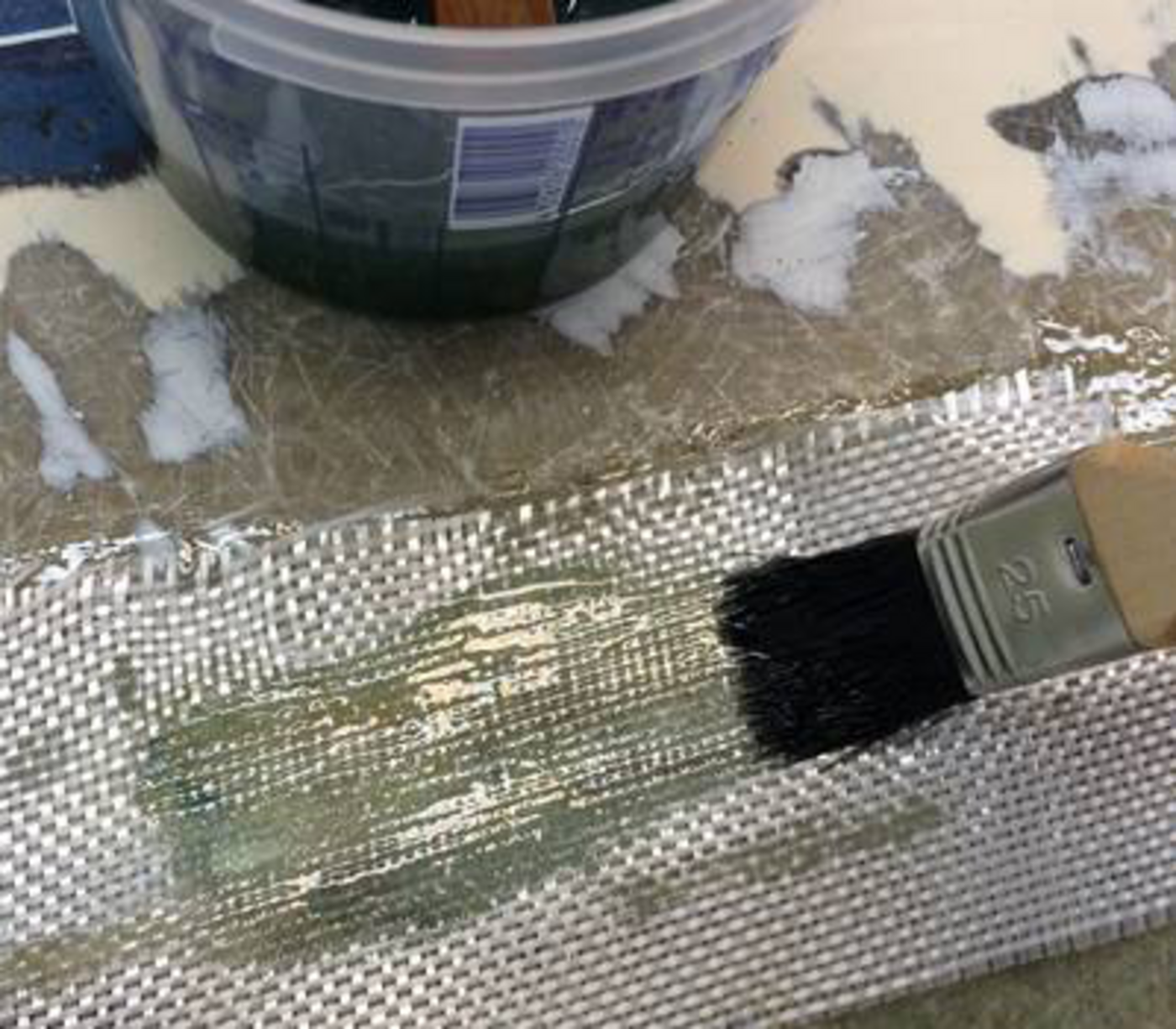 Plastar du i flera omgångar där laminatet hinner härda helt mellan varven måste du rugga upp ytan med sandpapper innan du fortsätter. Glöm inte att även tvätta av med aceton. Glasfibermattan bör överlappas med 5cm marginal som tidigare nämnt.
