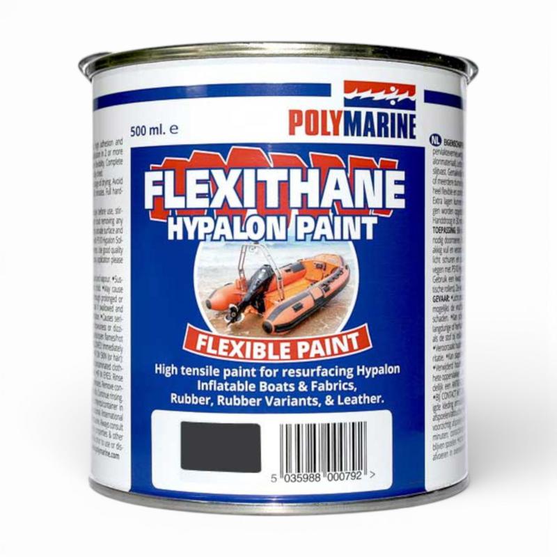 Polymarine Flexithane är en specialutvecklad, högkvalitativ färg framtagen för renovering och uppfräschning av uppblåsbara båtar tillverkade i Hypalon, PU-belagd väv och andra gummibaserade material. Färgen kombinerar extrem flexibilitet med mycket god vidhäftning och slitstyrka, vilket gör den idealisk för både estetisk uppfräschning och långsiktigt skydd.