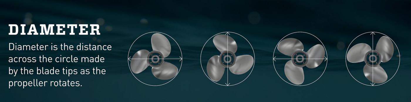 En större diameter innebär att propellern greppar mer vatten vid varje varv, vilket kan ge bättre drivkraft på tunga eller långsamtgående båtar. Mindre diameter ger snabbare varv men mindre grepp, vilket kan passa lättare båtar eller motorer som varvar högt.