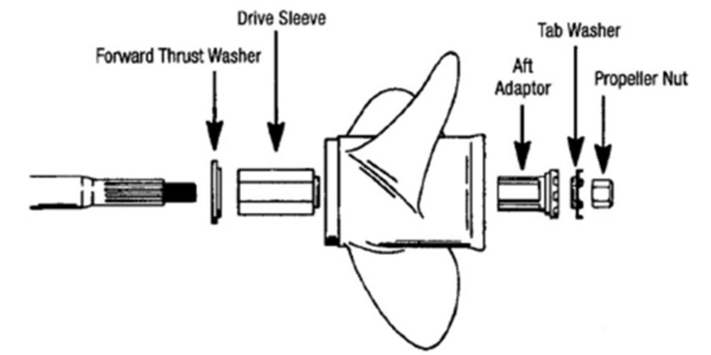Thrust washer: Bricka mellan propellern och växelhuset som fördelar trycket.