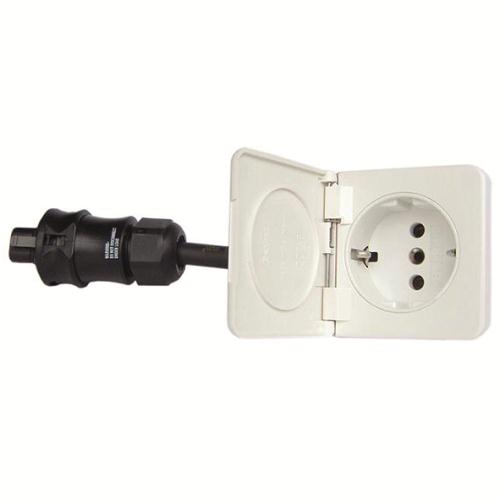 Ratio vitt flushmonterat eluttag. 1-vägs uttag, 16A/250V. Tillbehör som passar RATIO landströmsystem. Enkel installation med plug-in. Installation behöver ej göras av behörig elektriker.