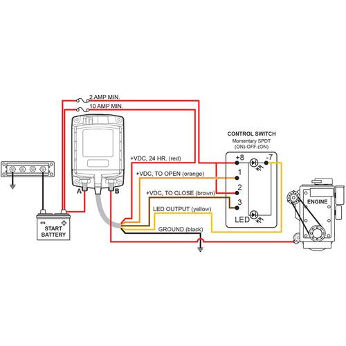 Huvudströmbrytare för bogpropeller, ankarspel m.m. som fjärraktiveras med separat elkontakt. Mekaniskt till och frånslag (100 000 cykler). Manuell brytare ("låsbar") för extra säkerhet vid spänningsbortfall hos fjärrkontakt eller vid service. Utgång för fjärrmanövrerad strömbrytare samt för diodindikering.