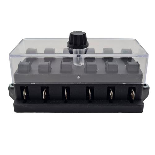 Svart plast med transparent kåpa. Avsedd för flatstiftssäkringar.