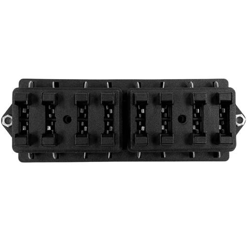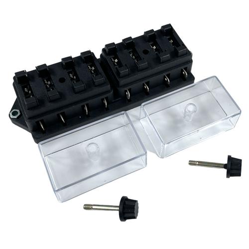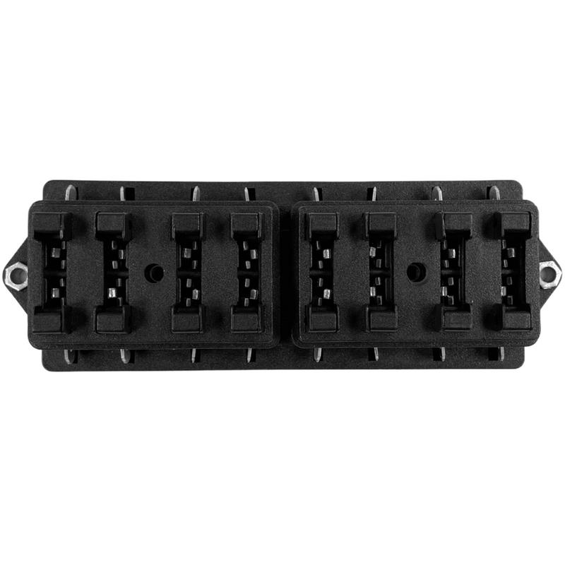 Hållaren är avsedd för 8 stycken flatstiftssäkringar (4 st under vardera lock).