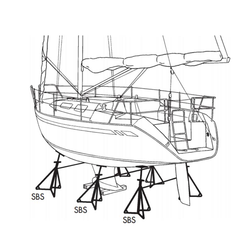 Helgalvaniserade båtstöttor i varmgalvaniserat stål. Snabb höjdjustering med hjälp av vingmutter med trapetsgänga.