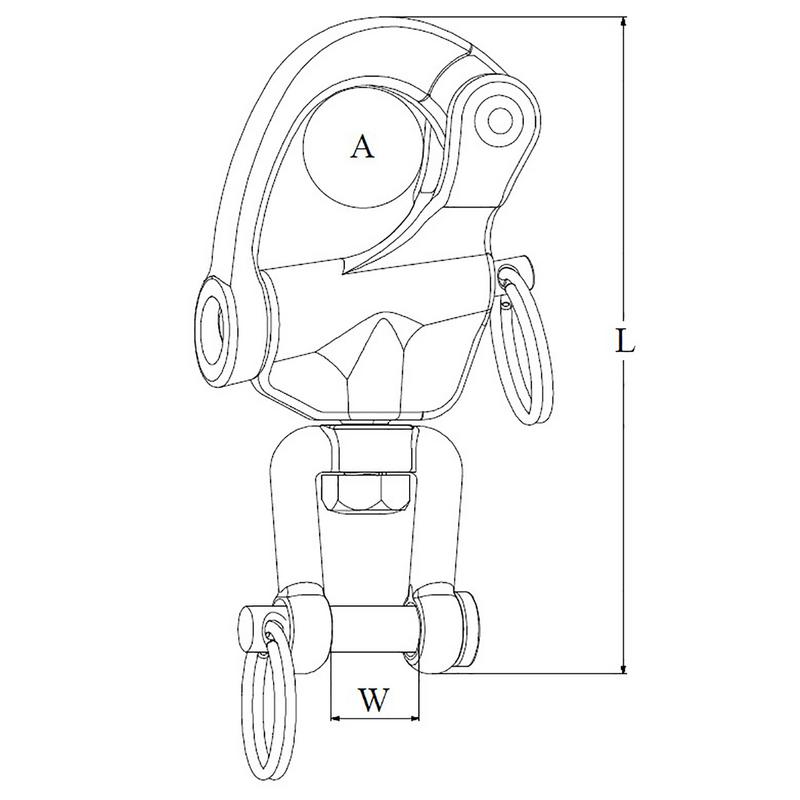 Skothake med svivel och schackel i rostfritt syrafast stål.