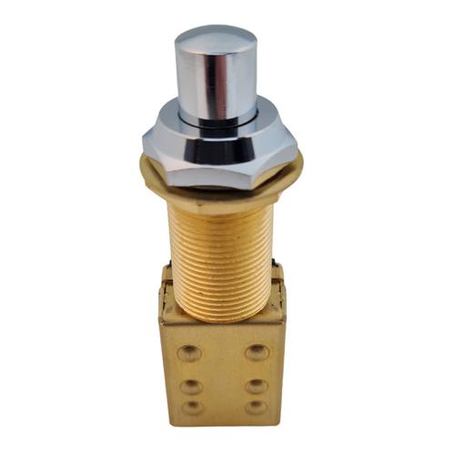 Återfjädrande start- och signalknapp i mässing. Förkromad hals och knapp.
