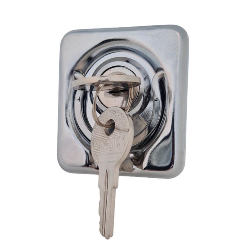 Kan monteras med eller utan medföljande durkbeslag (55x49mm). Förkromad mässing. Låsvinkel: 80° + 80°. Levereras med 2st nycklar.