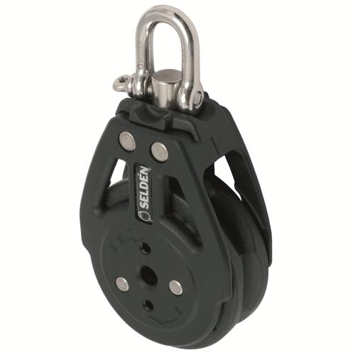 Ø5mm Delrinkullager och Ø45mm trissa i kolfiberförstärkt polyetherimid.