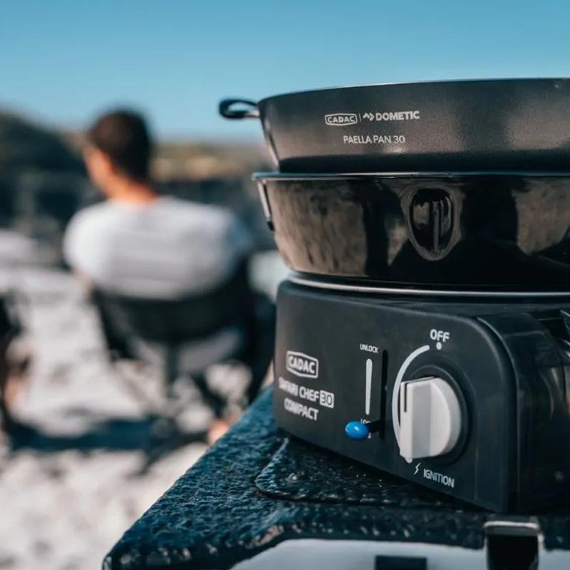 Trots sin lilla storlek är Safari Chef Compact Light extremt mångsidig på grund av de olika kokplattorna som ingår; ett grytställ, grillgaller och gryta/lock. Använd grytstället för att koka en gryta med soppa eller pasta. Grillgallret och plattan har CADAC:s GreenGrill-beläggning och är perfekta för att baka och grilla kött, fisk och grönsaker. Locket kan även användas som panna och är därför multifunktionellt.