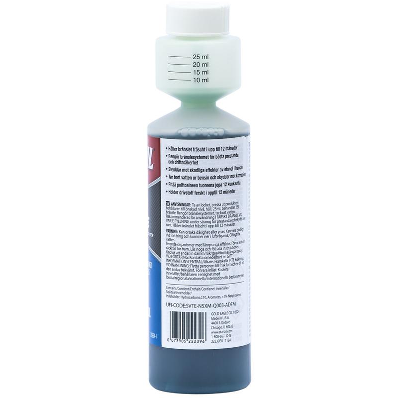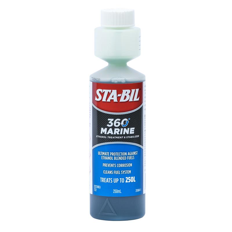Bränslestabilisatorn STA-BIL 360 Marine är framtagen för att skydda marina motorer i tuffa och fuktiga miljöer, både vid aktiv körning och under vinterförvaring. STA-BIL 360 Marine motverkar de negativa effekterna av etanol i dagens bensin och håller bränslet fräscht i upp till 12 månader.