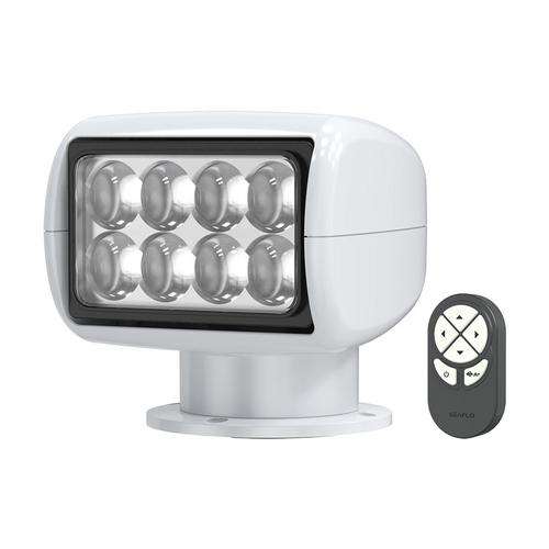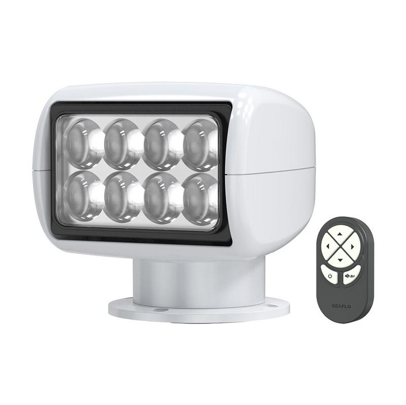 SEAFLO LED sökarljus är utformat för att ge kraftfull och flexibel belysning i alla riktningar. Med en horisontell rotation på 360° och en vertikal sveprörelse på 60°-75° kan det enkelt anpassas efter dina behov. Utrustat med en fjärrkontroll och en 4,6 m lång kabel, gör det navigering i mörker smidigare och säkrare. Perfekt för båtägare som behöver lokalisera bojar, förtöjningsplatser och farledsmarkeringar.