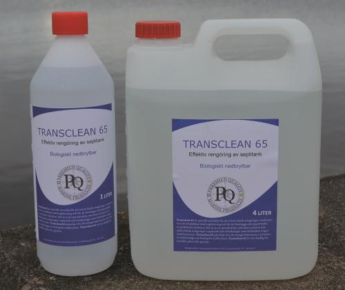 Transclean 65 är speciellt utvecklat för att ta bort hårda avlagringar i toalettsystem för fritidsbåtar med sugtömning och för att förebygga och upprätthålla en problemfri funktion. Det är en specialvätska som löser urinsten och andra hårda avlagringar i septitank och rörledningar samt förhindrar stopp i toalettsystemet. Transclean 65 påverkar inte de nyttiga bakterierna i systemet, är miljövänligt och biologiskt nedbrytbart. Transclean 65 är inte skadlig för metaller, plast eller gummi.
