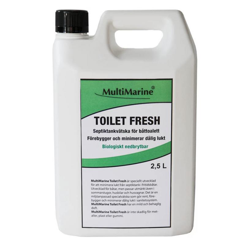 MultiMarine Toilet Fresh är speciellt utvecklad för att minimera lukt från septiktank i fritidsbåtar. Utvecklad för båtar, men passar utmärkt även i sommarstugor, husbilar och husvagnar. Det är en miljöanpassad specialvätska som gör rent, förebygger och minimerar dålig lukt i sanitetssystem.