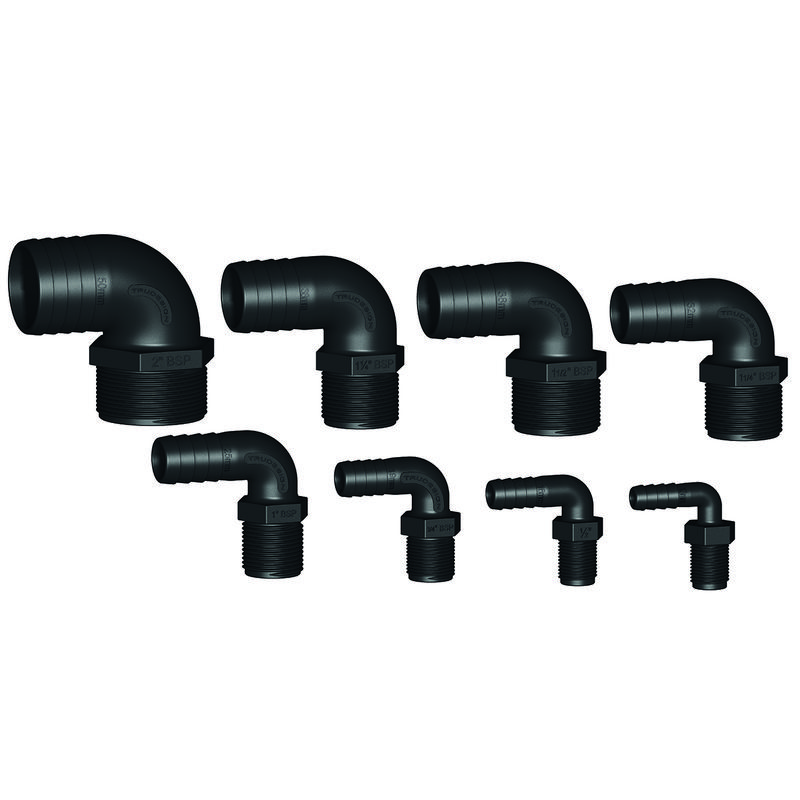 Slangsockel 90º i komposit (armerad Nylon). Materialet är extremt starkt och har låg vikt. Materialet kan heller inte korrodera. Kemikalieresistent och resistent mot diesel, bensin, lösningsmedel m.m. UV-resistent.