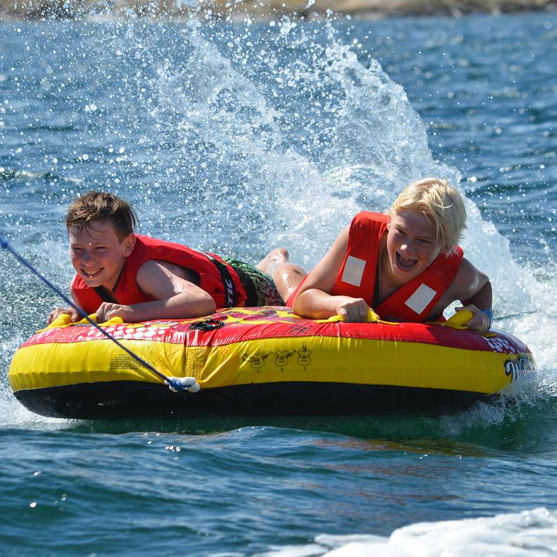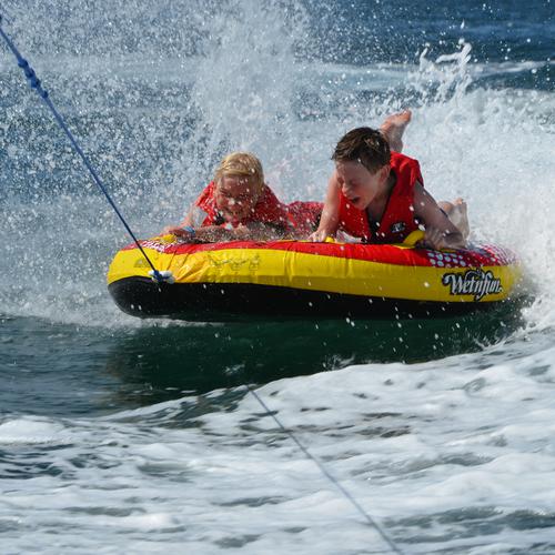 Wetnfun Banyan stor slidertube avsedd för 1 eller flera personer. Helklädd med kraftigt nylontyg samt sits i neopren. 4 kraftiga handtag. Kul tube vid åkning samt skön att ligga och slappa på efter åkning. Levereras inklusive tubelina samt stor handpump.