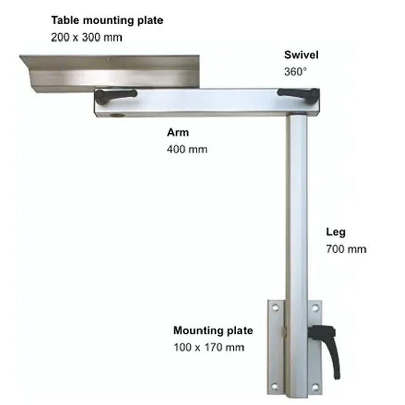Bordsskivan och förlängningsarmen kan vridas 360 grader till valfri position