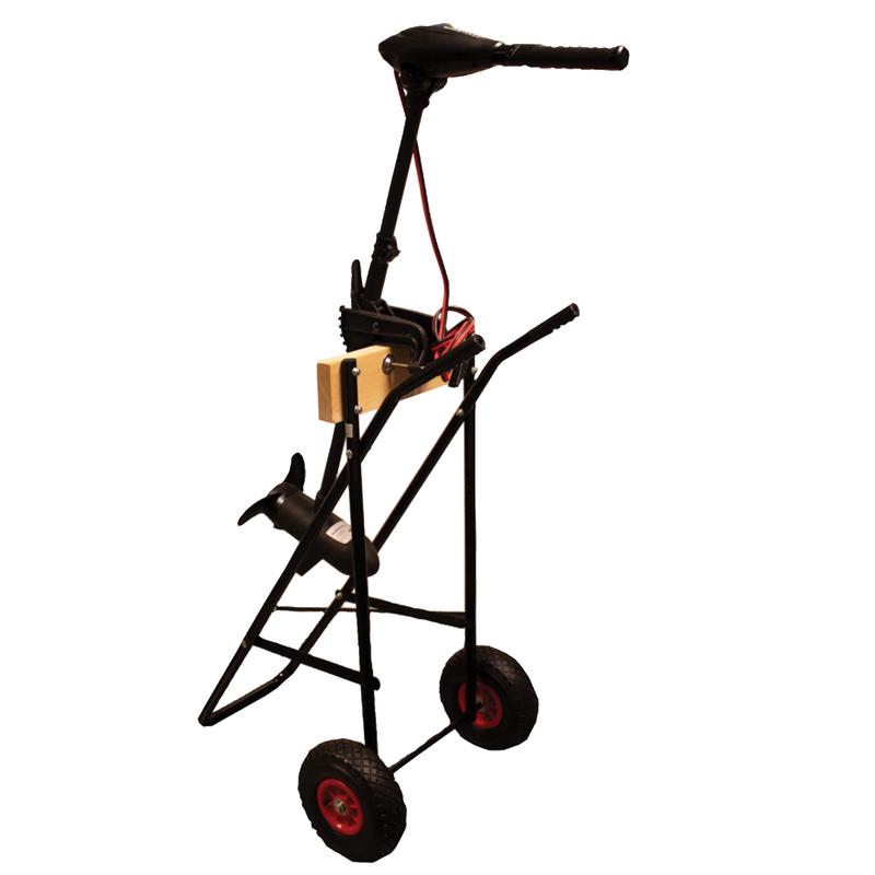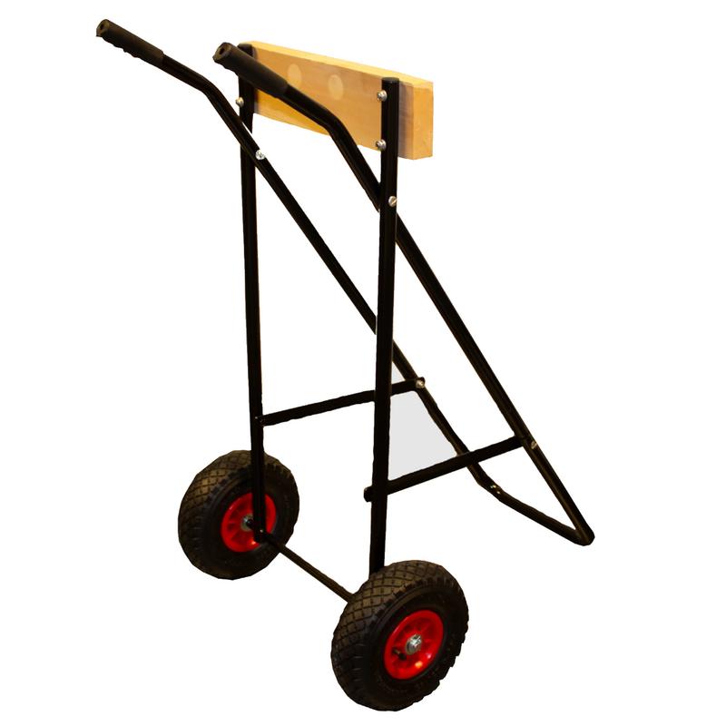 Motrovagn i stål med luftfyllda gummihjul. För förvaring och flyttning av utombordsmotorer.