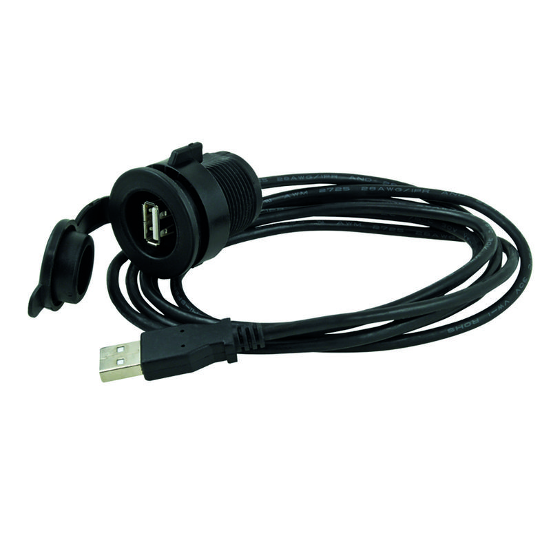 Förlängningskabel med USB i båda ändarna. Kabel kan användas löst eller monteras i panel.