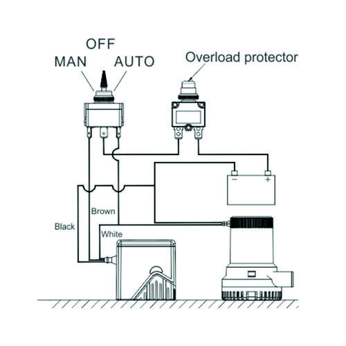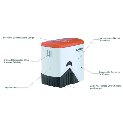 Nivåvakt med elektromekanisk funktion. Sluten konstruktion för största driftsäkerhet. Snabbkoppling i botten för enkelt underhåll. Passar alla manuella elektriska länspumpar upp till 25 Ampere. Kvicksilverfri.