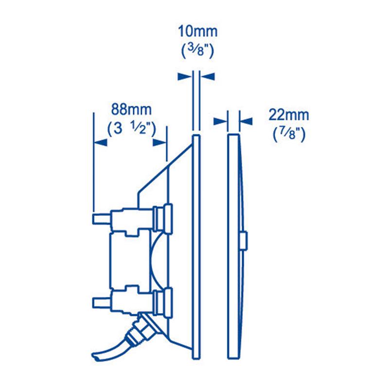 Tillverkad i robust ABS-plast för exteriör montering som t.ex. på akterspegeln.