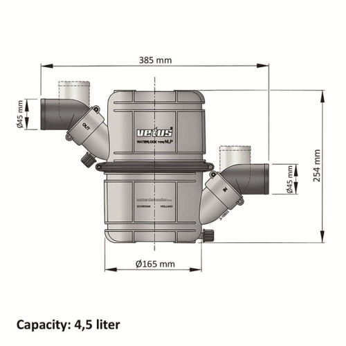 Heavy Duty vattenlås/ljuddämpare är av tvåstegstyp med två expansionskammare som är skilda åt av en horisontell vägg med stigrör i mitten. Om man jämför med vattenlås av enstegstyp (med bara en expansionskammare) har NLP vattenlås en väsentligt högre ljuddämpande effekt. Övre kammaren kan vridas ca 300° och såväl inloppsanslutningen som utloppsanslutningen kan vridas 360°, vilket gör den enklare att installera ljuddämparna i ett vanligen trångt motorrum.