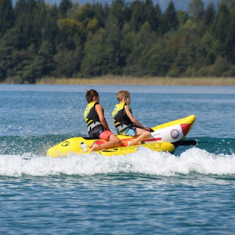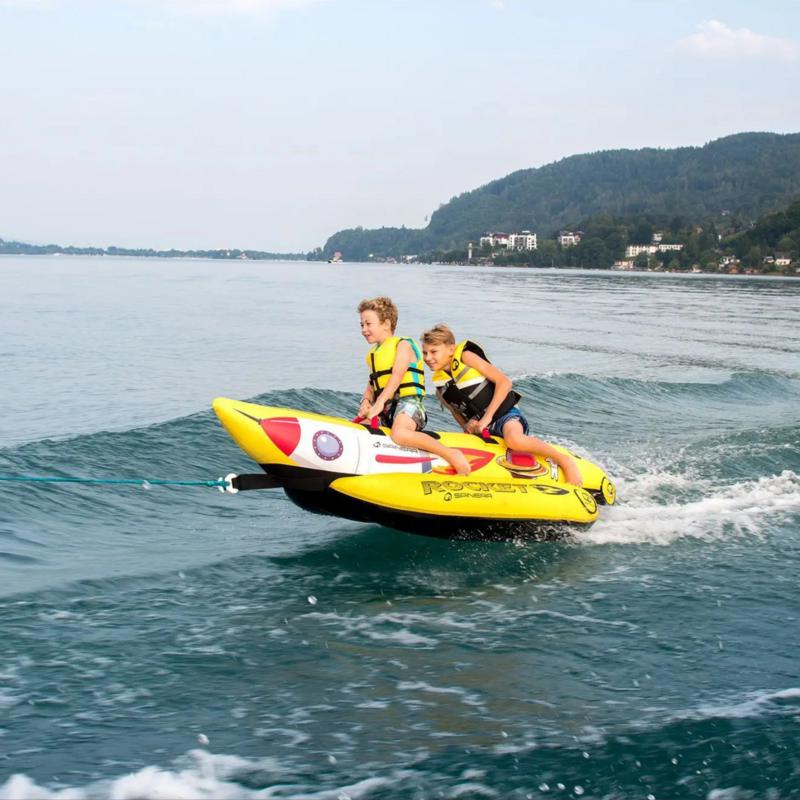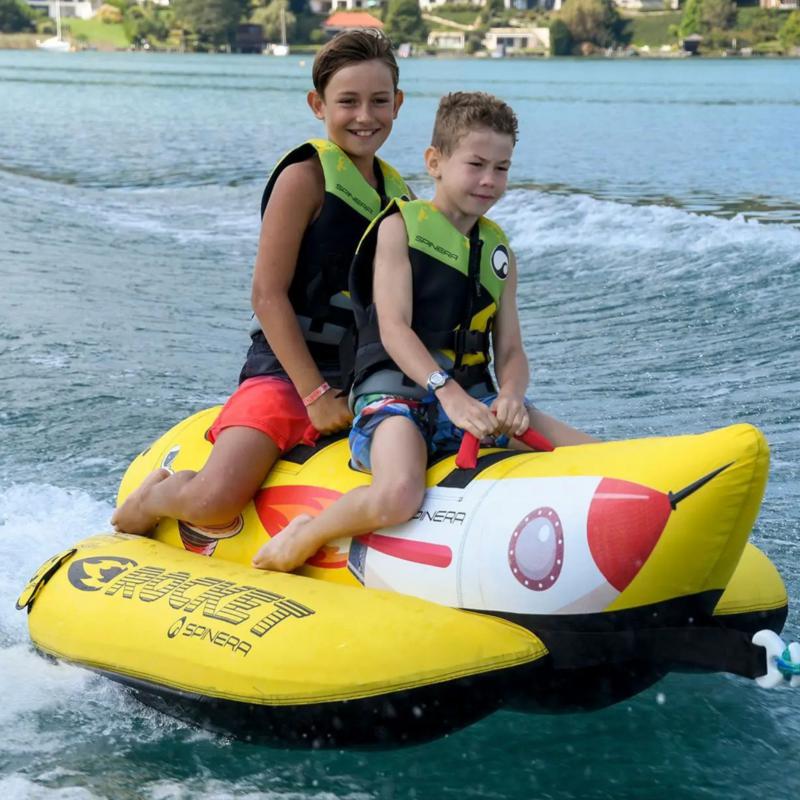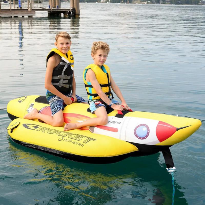 Spinera Rocket 2 är en sportig och kraftfull uppblåsbar tube för två personer – perfekt för dig som vill ta vattenleken till nästa nivå. Med sin strömlinjeformade design, slitstarka material och genomtänkta komfortdetaljer är Rocket 2 gjord för att köras hårt bakom båt och samtidigt vara bekväm att hålla sig kvar på.