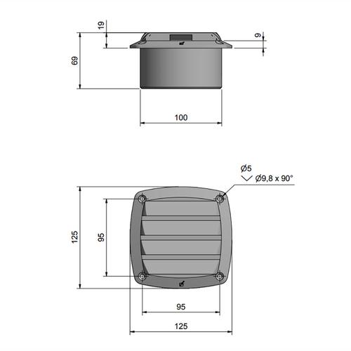 Ventilgaller tillverkad i svart eller vit plast.