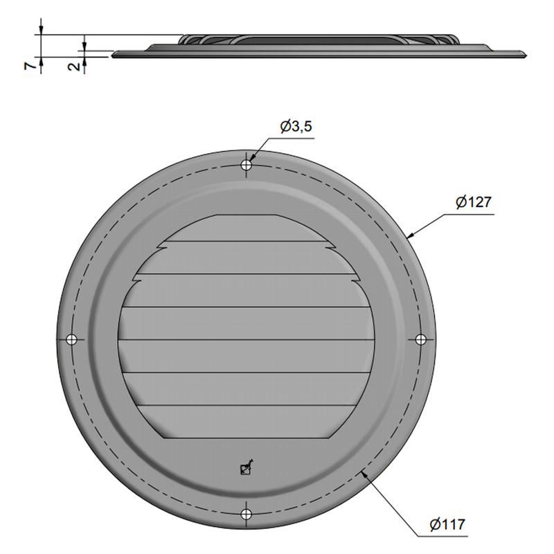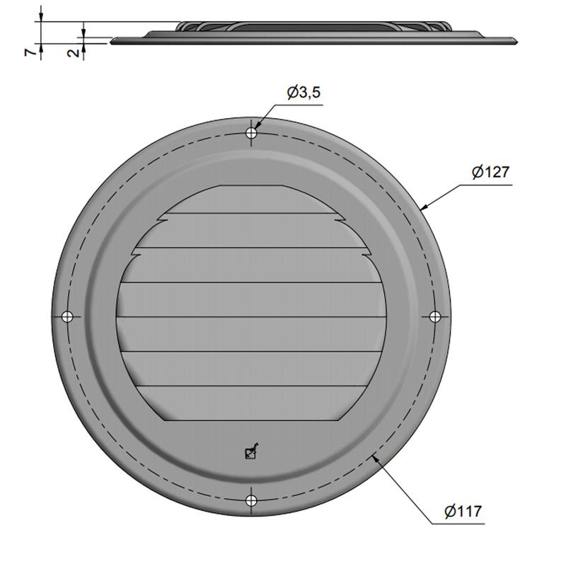 Ventilgaller Ø 127mm i rostfritt stål (AISI304).