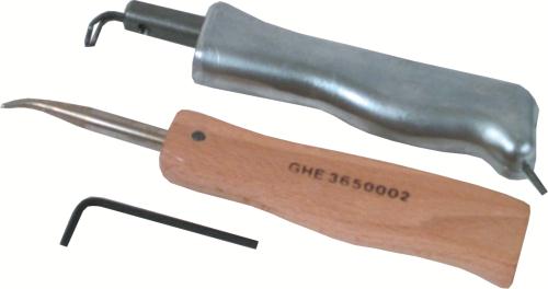 Detta specialverktyg underlättar montering av glas/rutlist. Speciell bygel och matningshål i handtaget för montering av spränglist.