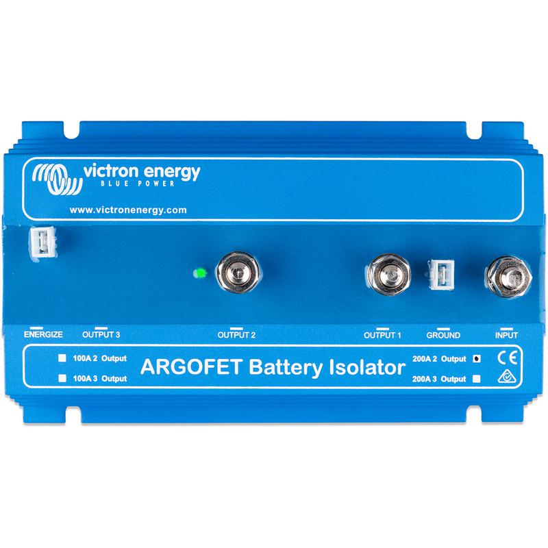 Laddningsfördelare som gör det möjligt att samtidig ladda två batterier från en generator utan att batterierna kopplas ihop. I motsats till diodbatteriisolatorer har FET frånskiljare praktiskt taget ingen spänningsförlust. Spänningsfallet är mindre än 0,02 Volt vid låg ström och i genomsnitt 0,1 volt vid högre strömmar. När du använder ARGO FET batterifrånskiljare finns det inget behov av att öka utspänningen från generatorn. Hänsyn bör emellertid tas för att ha korta kabellängderna och kablar med tillräckligt tvärsnitt.