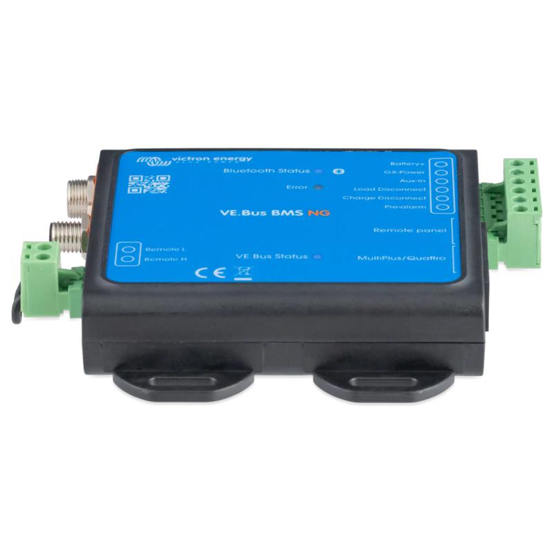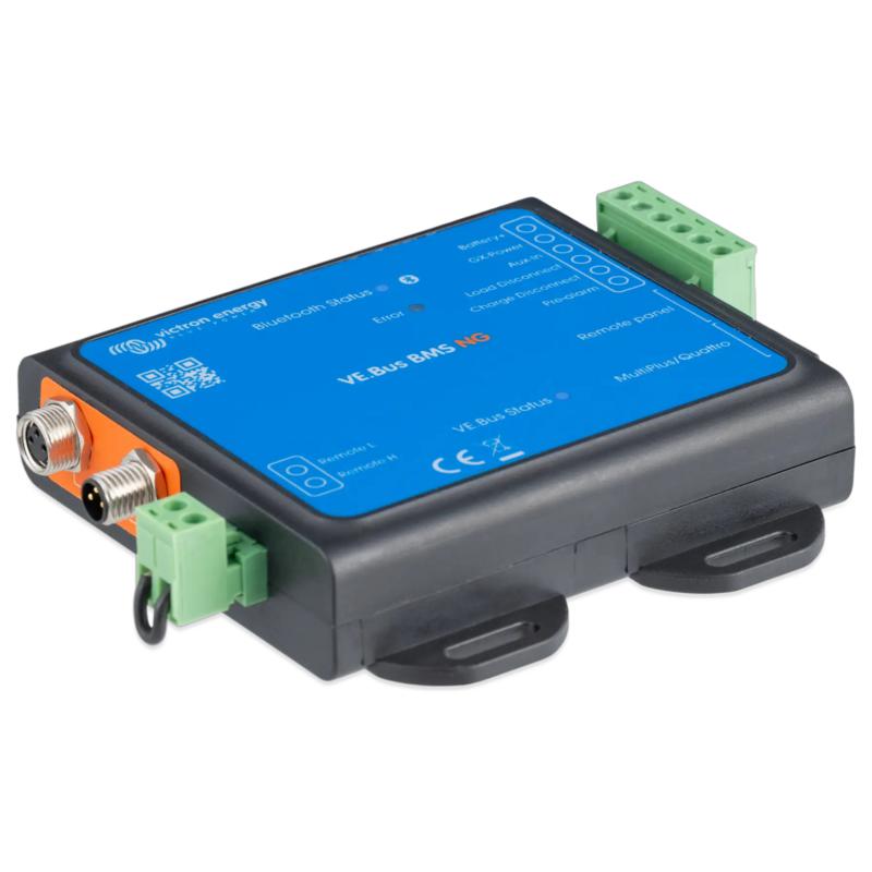 VE.Bus BMS NG är ett avancerat batterihanteringssystem från Victron Energy, utvecklat för Lithium NG-batterier i system med VE.Bus-anslutna växelriktare och laddare. Systemet övervakar varje cell individuellt och skyddar mot över- och underspänning, över- och undertemperatur samt oönskad urladdning. Tack vare integrerad Bluetooth kan enheten anslutas direkt till VictronConnect för trådlös konfiguration, övervakning och firmware-uppdateringar.