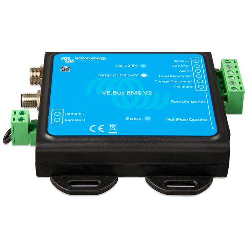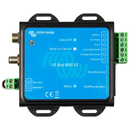 VE.Bus BMS V2 är nästa generation av VE.Bus Battery Management System (BMS - Batterihanteringssystem) för Victron Energy Lithium Battery Smart batterier. Dessa batterier är litiumjärnfosfat (LiFePO4) batterier och finns tillgängliga i 12,8 V eller 25,6 V och med ett flertal kapaciteter. De kan kopplas i serie, parallellt och serie/parallellt för att skapa en batteribank för systemspänningar på 12 V, 24 V eller 48 V. Det maximala antalet batterier i ett system är 20, vilket ger en maximal energilagring på 84 kWh i ett 12 V-system och upp till 102 kWh i ett 24 V¹ och 48 V¹ system.