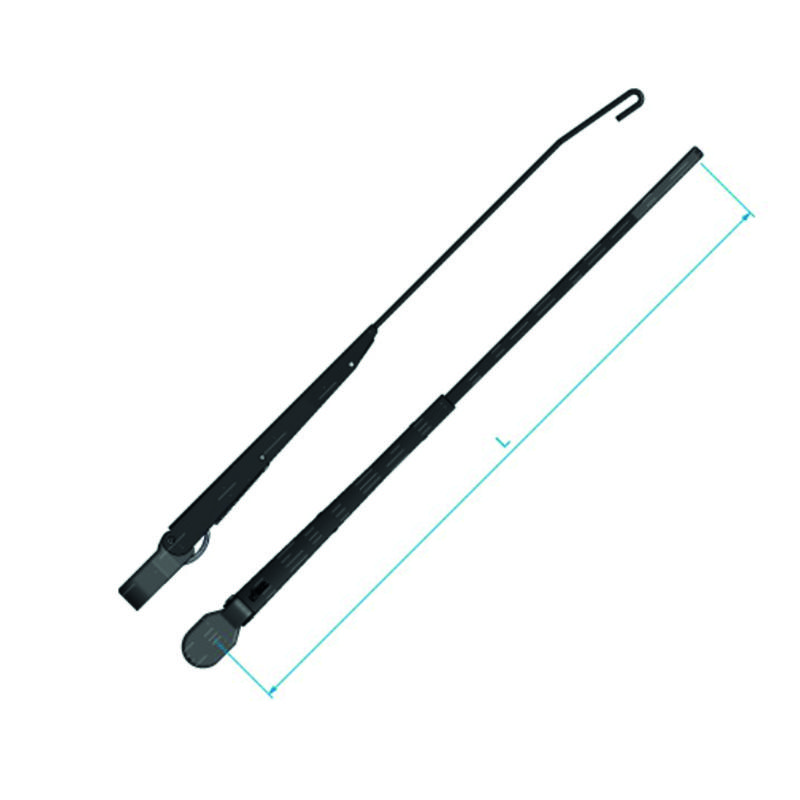 Torkararm i rostfritt stål som passar: W5 (6mm axel) Justerbar längd: 11-14"/280-355mm. Mattsvartlackerad med J-kroksanslutning som nästan passar marknadens alla torkarblad.